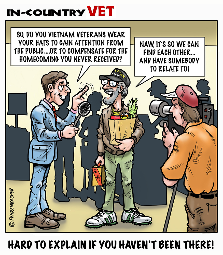 Phil enlisted in the Army in 1965 where you served for years in Vietnam.  He became a graphic designer and has worked for the state of Oregon for 26 years.  He retired in 2003 and started the Cartoon "In-Country".  The cartoons reflect his experiences during his tour of duty in South Vietnam.